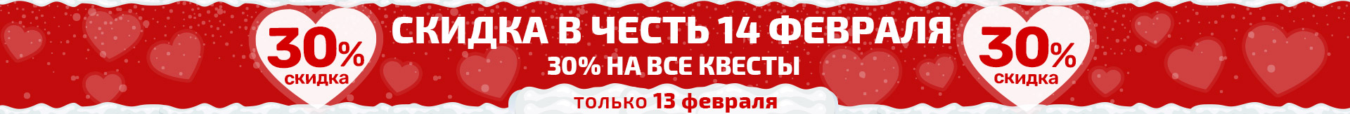 В нашем каталоге вы найдете 90 квестов практически для каждого события и возраста: квесты для детей, подростков и взрослых; квесты для женщин (на 8 марта) и квесты для мужчин (на 23 февраля); семейные квесты; квесты на день рождения; романтические квесты, а также квесты для школы, для офиса, для дачи, для дома и для загородного отдыха. Каждый сможет выбрать для себя подходящий вариант.